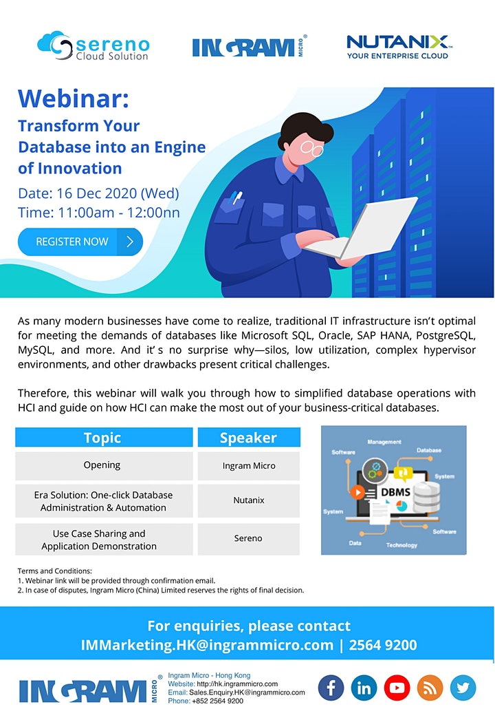 因此,該網絡研討會將引導您逐步了解如何使用Nutanix HCI 及Nutanix Era簡化數據庫操作,並指導如何充分利用您的關鍵業務數據庫。
